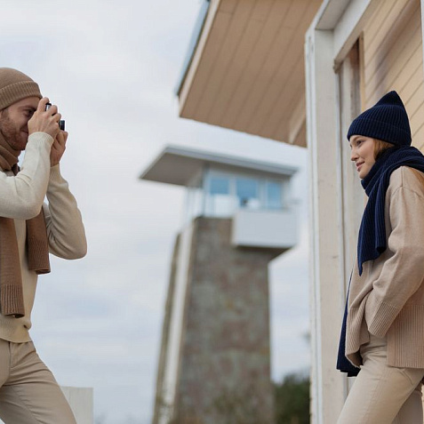 В шапке модного фасона Alpine можно покорять горные вершины, а можно — сердца поклонников. Выполненная с высоким содержанием шерсти альпака и мериноса, шапка сохраняет свою первоначальную форму долгое время.