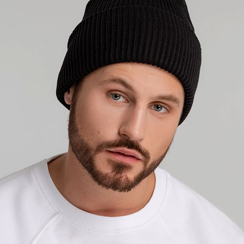 Двухслойная шапка фактурной вязки с отворотом.