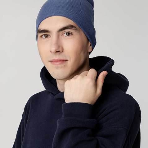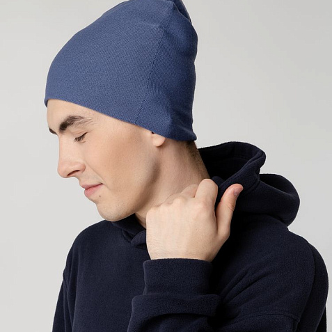 Двухслойная шапка-бини тонкой вязки, которую можно носить как с подворотом, так и без.
