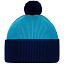 Двуслойная шапка фактурной вязки с контрастным подворотом и помпоном.