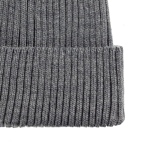 Металлический шильд с названием бренда расположен у заднего шва шапки. Это оставляет место спереди для пришива лейбла или шильдика с логотипом заказчика.