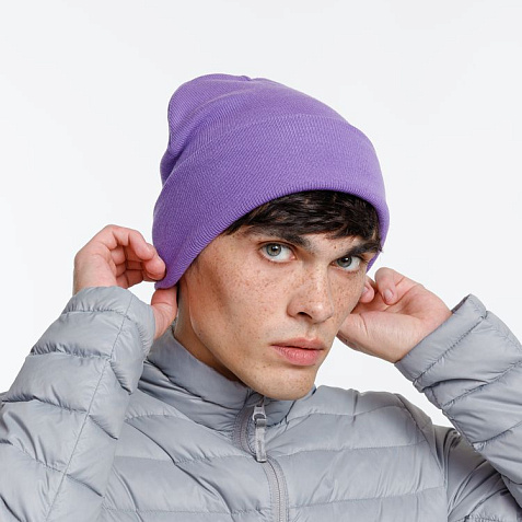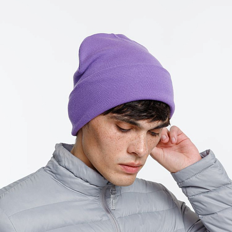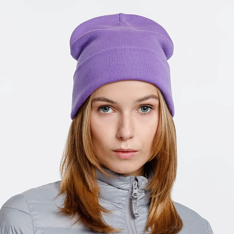 Двухслойная шапка из акриловой пряжи с регулируемым отворотом 7–10 см.