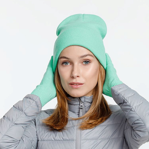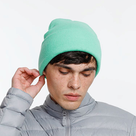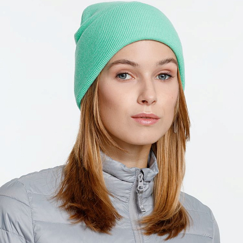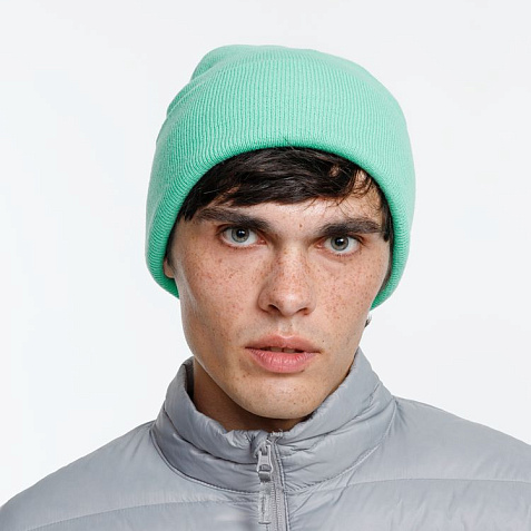 Двухслойная шапка из акриловой пряжи с регулируемым отворотом 7–10 см.