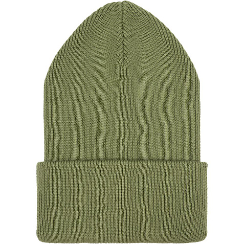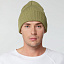 Двухслойная шапка, связанная резинкой, с широким отворотом.