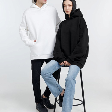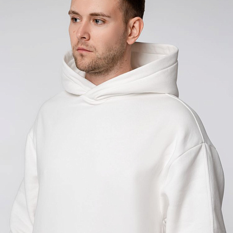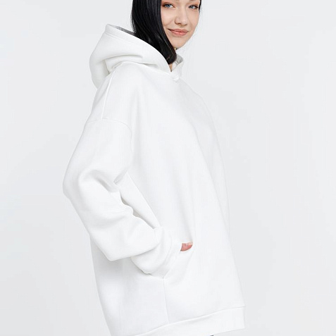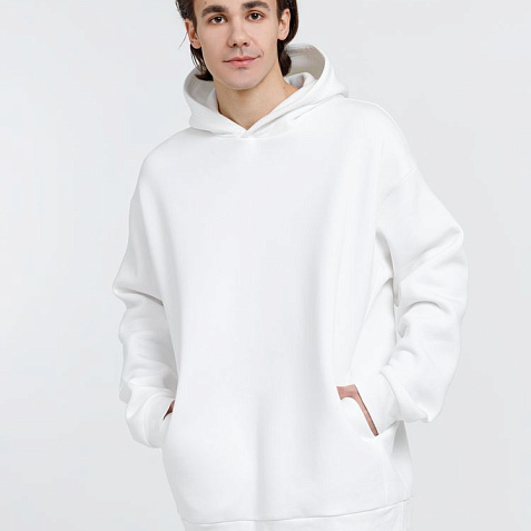 Худи унисекс One Size со спущенным плечом и карманами в боковых швах.