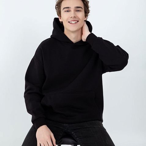 Худи унисекс со спущенным плечом и карманом-кенгуру.