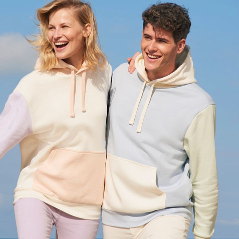 Трехцветное утепленное худи унисекс из органического хлопка и переработанного полиэстера.