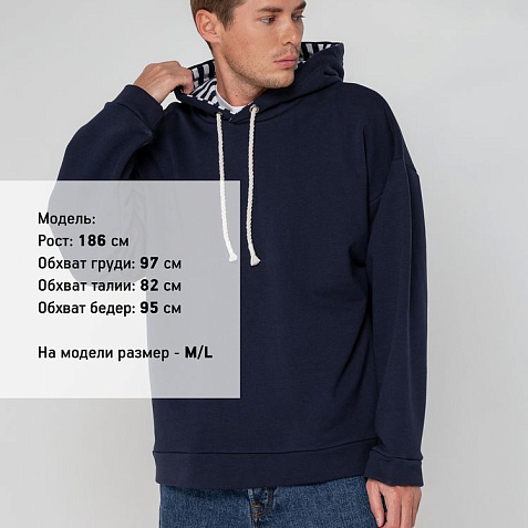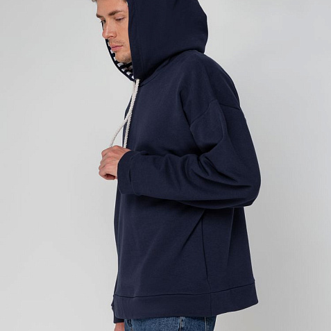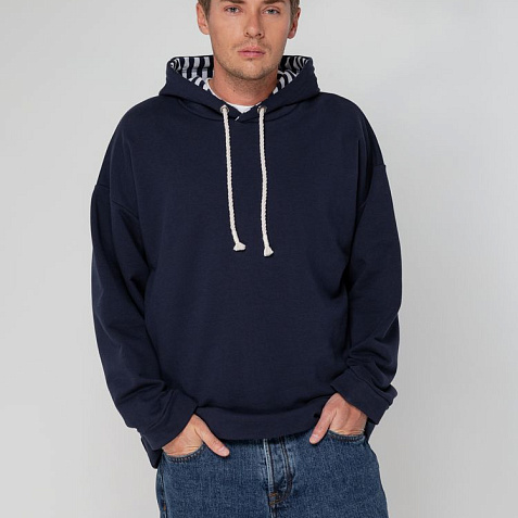Худи унисекс в морском стиле со спущенным плечом и карманами в боковых швах.