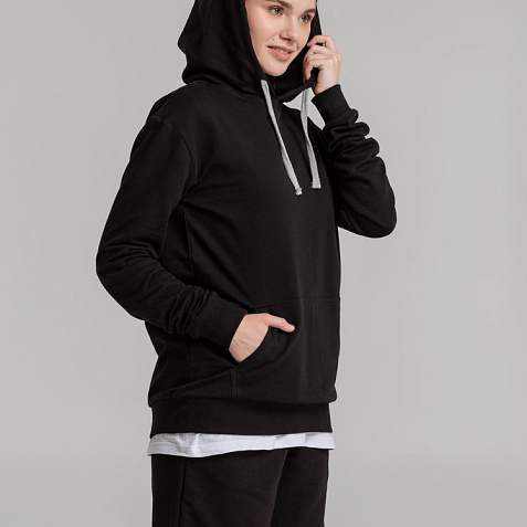 - Утягивающий шнур серого цвета в капюшоне
