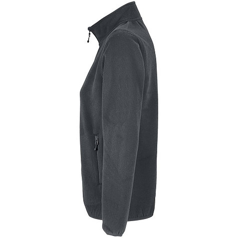 Флисовая женская куртка с воротником-стойкой. Застежка-молния в тон ткани, боковые карманы на молнии. Укрепляющая тесьма по вороту. Края рукава и низ изделия отделаны эластичной резинкой.
