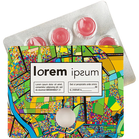 В стоимость изделия входит полноцветная печать и офсетный лак на шубере.Леденцы со вкусом на выбор, 10 шт. по 3,2 г.