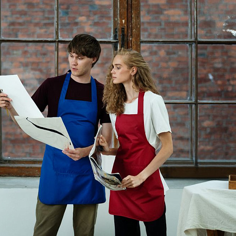 Фартуки Neat сшиты из ткани дюспо, которая считается лучшим современным материалом для изготовления курток, ветровок и плащей. Это прочный материал из полимерных волокон с защитной пропиткой, который не впитывает влагу и обеспечивает хорошую циркуляцию воздуха. Яркая палитра привлекает внимание, а цвет не выгорает со временем.