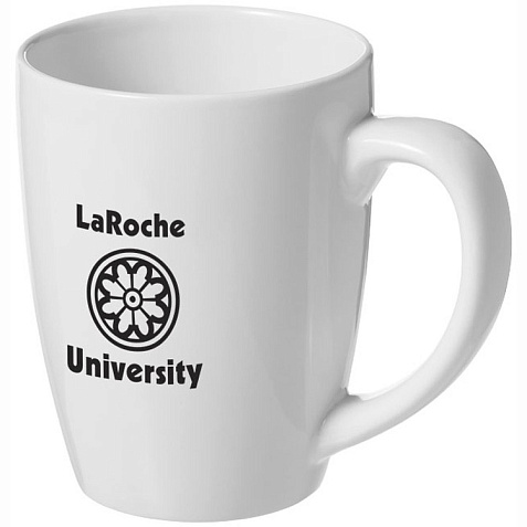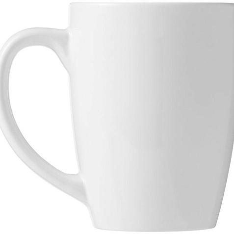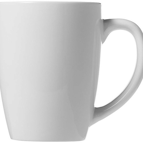 Стильная керамическая кружка емкостью 350 мл. Тампопечать (1 цвет (белые изделия)) на данный товар осуществляется бесплатно. Оплачивается только настройка оборудования в размере 4500 рублей на весь тираж.