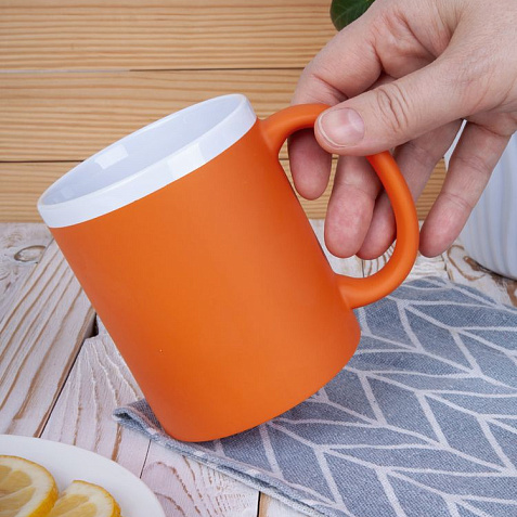 Кружка StopSpot с покрытием софт-тач, оранжевая