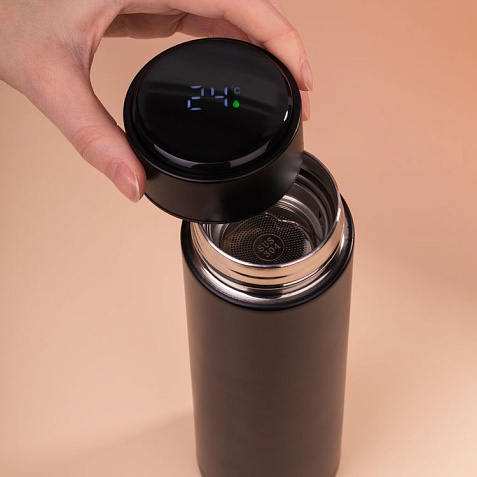 Съемное ситечко помогает удобно и аккуратно заварить в термосе чай, кофе или травяной сбор.