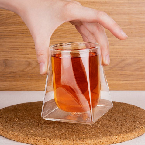 Стакан Quadroni подходит для подачи как горячих, так и холодных напитков. Благодаря двойным стенкам из тонкого боросиликатного стекла стакан практически ничего не весит, отлично сохраняет тепло и не обжигает руки.