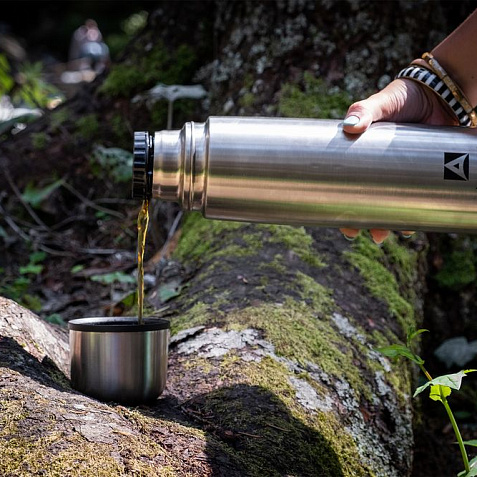 - Конструкция с двойными стенками и вакуумной изоляцией сохраняет температуру до 26 часов