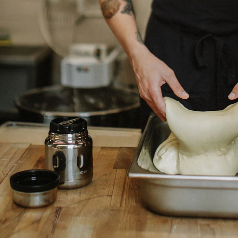 - Благодаря металлической вставке на пробке еда не контактирует с пластиком