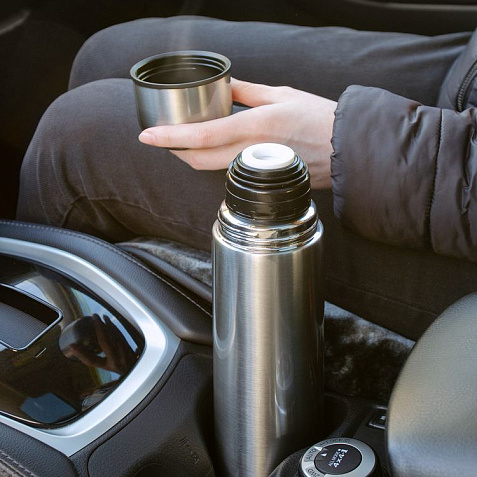 Двухслойная вакуумная конструкция из нержавеющей стали с завинчивающейся пробкой с клапаном.