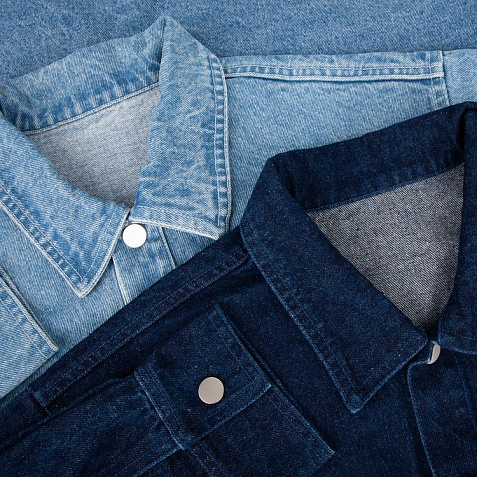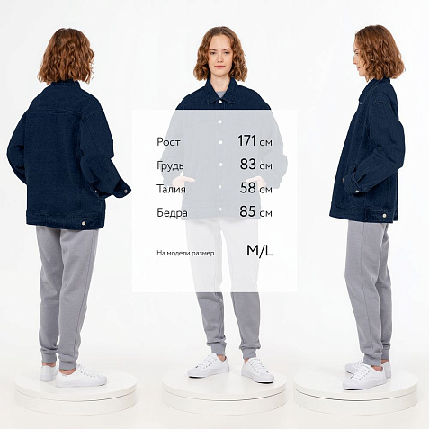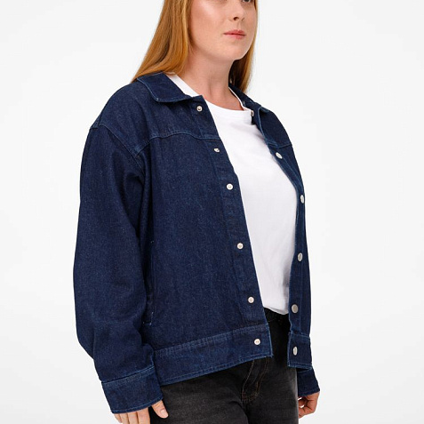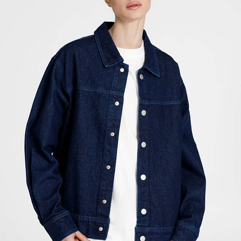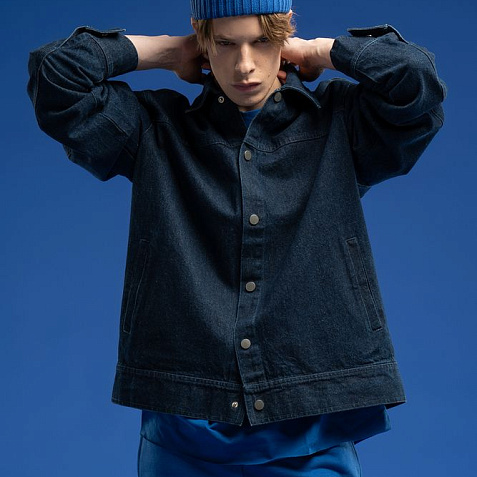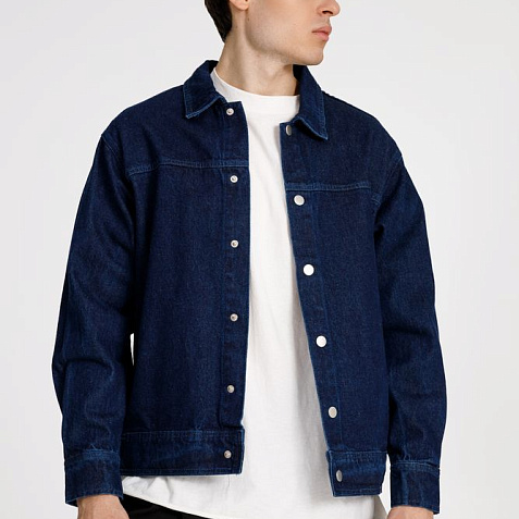 Джинсовая куртка унисекс на кнопках свободной посадки.