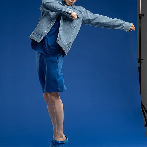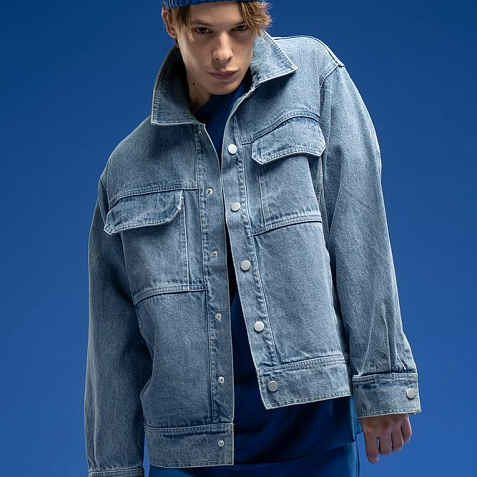 Джинсовая куртка унисекс на кнопках свободной посадки.