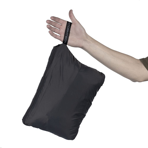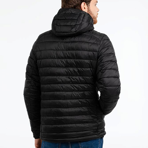 Эргономичная и ультралегкая куртка с капюшоном складывается в карман, расположенный внутри на спинке, и превращается в дорожную подушку.