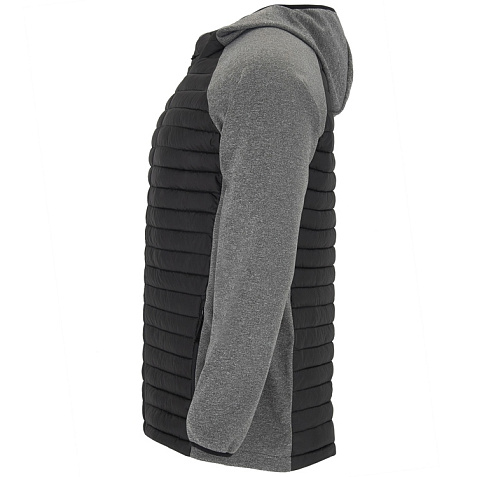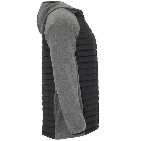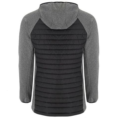 Мужская куртка из двух комбинированных тканей. - Несъемный регулируемый капюшон. - Рукава реглан. - Ткань softshell на рукавах, боковых вставках и капюшоне. - Стеганая ткань с утеплителем спереди и сзади. - Молния в тон с бегунком и защитой для подбородка. - Два кармана спереди с молнией. - Воротник, манжеты и низ с эластичной окантовкой в тон.