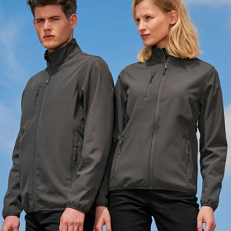 Мужская водонепроницаемая и ветрозащитная куртка на молнии из трехслойного софтшелла с флисовой изнанкой. Выполнена из переработанного полиэстера.