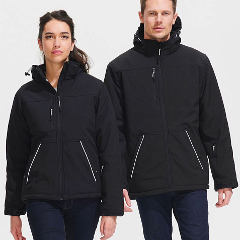 Куртка из материала Softshell. Водостойкость: 8000 мм, паропроницаемость: 1000 г/м² · 24 часа.