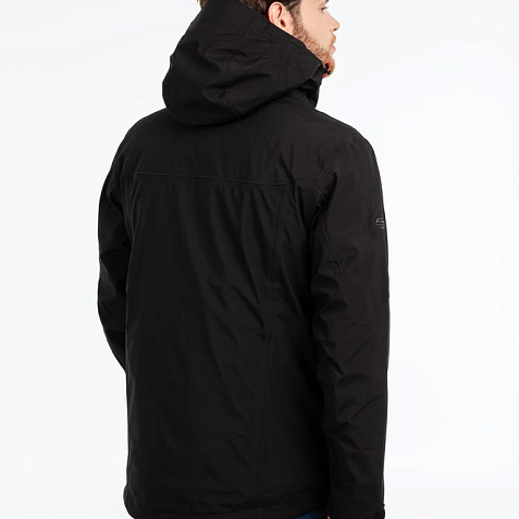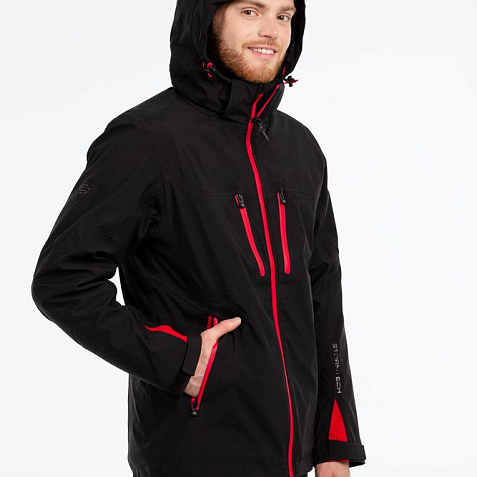 Ветровка из мембранной ткани H2Xtreme снаружи — дышит, но не пропускает влагу. Анатомический крой локтя обеспечивает максимальную свободу движений, а полностью проклеенные швы создают водозащитную капсулу. Внутренний слой — куртка с утеплителем — обладает надежной теплозащитой и удобно крепится к ветровке с помощью молний.