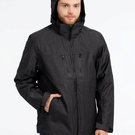Ветровка из мембранной ткани H2Xtreme снаружи — дышит, но не пропускает влагу. Анатомический крой локтя обеспечивает максимальную свободу движений, а полностью проклеенные швы создают водозащитную капсулу. Внутренний слой — куртка с утеплителем — обладает надежной теплозащитой и удобно крепится к ветровке с помощью молний.