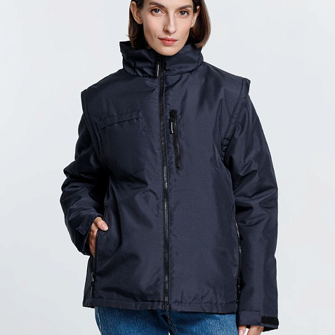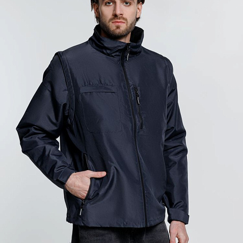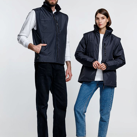 Куртка-трансформер, которая превращается в утепленный жилет. Выполнена из ткани оксфорд с водоотталкивающим покрытием. Модель унисекс.