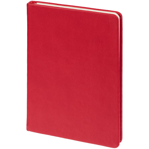 Твердая обложка из материала Latte, красный, ляссе в цвет обложки.