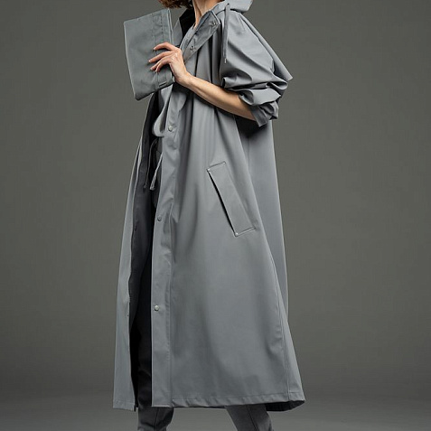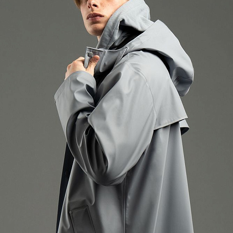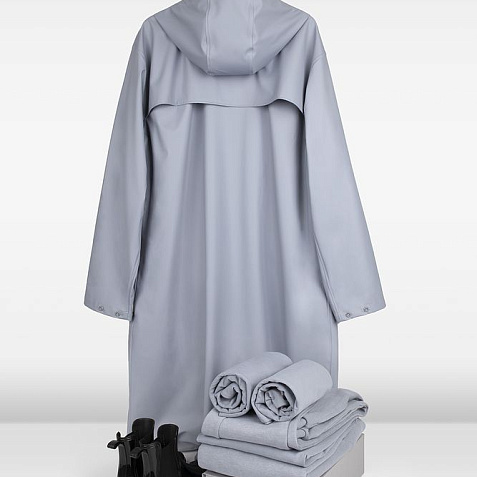Плащ-дождевик с капюшоном из полиэстера с полиуретановым непромокаемым покрытием.
