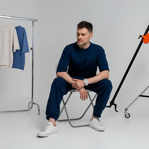 Футболка унисекс оверсайз со спущенным плечом.