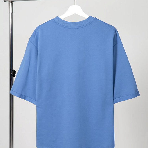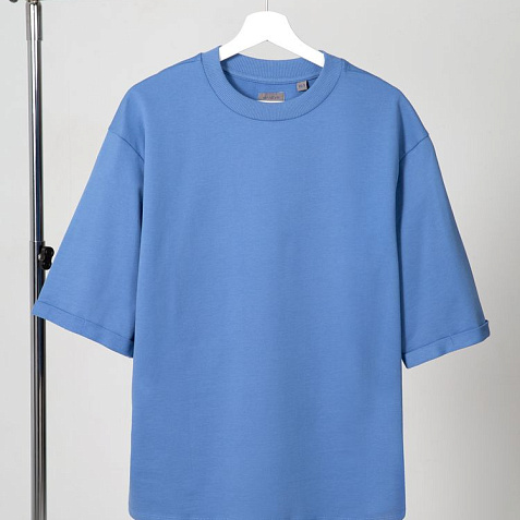 Футболка унисекс свободного кроя со спущенным плечом и смещенными плечевыми швами.