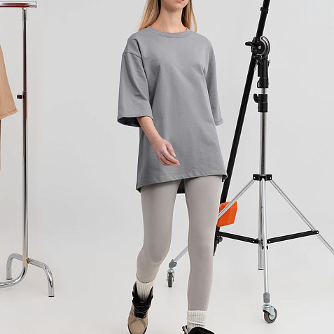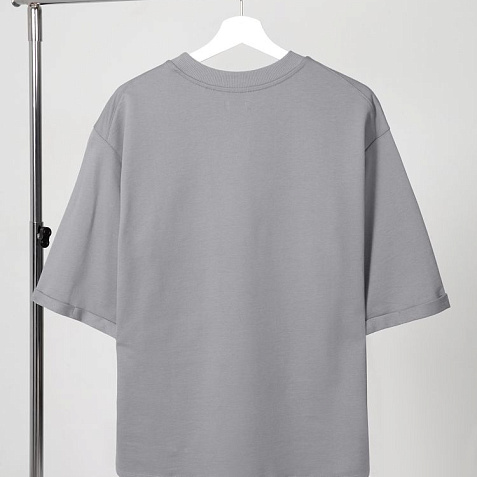 Футболка унисекс свободного кроя со спущенным плечом и смещенными плечевыми швами.