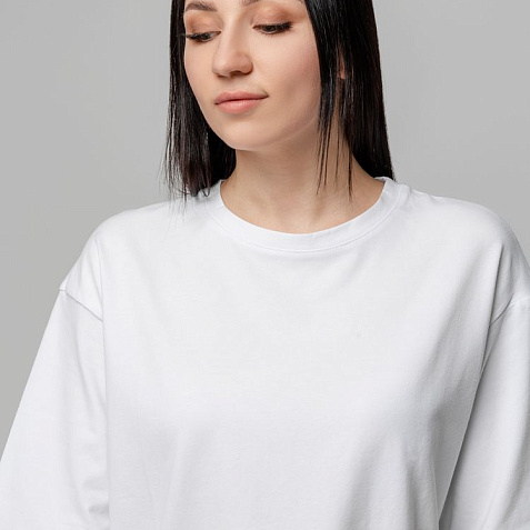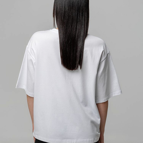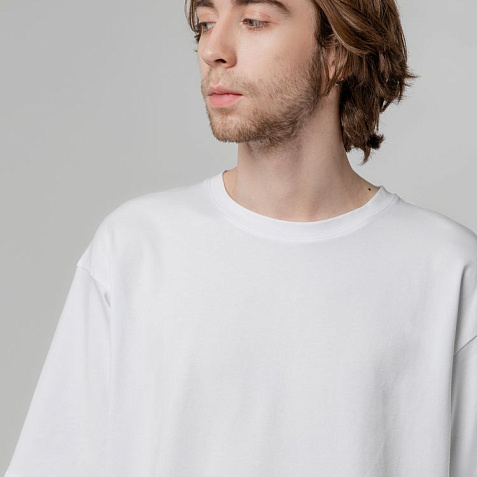 Футболка унисекс свободного кроя с боковыми швами. Благодаря тонким и длинным волокнам хлопка ткань футболки отличается гладкостью, ровностью и прочностью, отлично сохраняет форму, не деформируется и не выцветает при стирке.