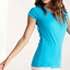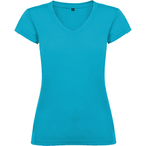 Женская футболка с коротким рукавом и V-образной горловине, обработано рибом 1х1. Полуприлегающий силуэт модели с боковыми швами.