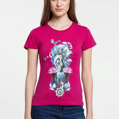 Приталенная кроеная футболка с боковыми швами и тонким воротом из джерси. Укрепляющая тесьма по вороту.