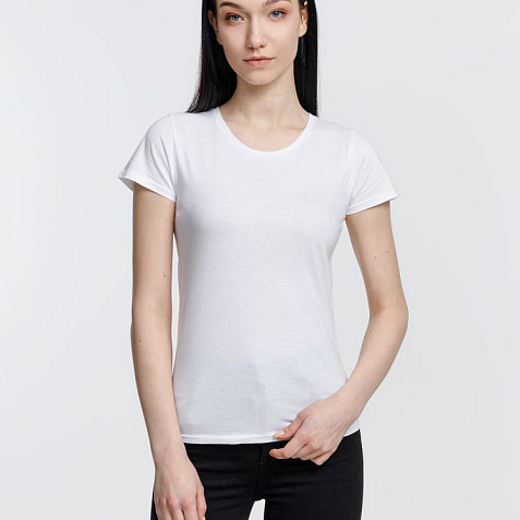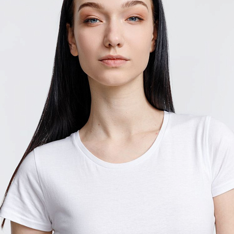 Женская бесшовная облегающая футболка из органического хлопка с круглым вырезом.