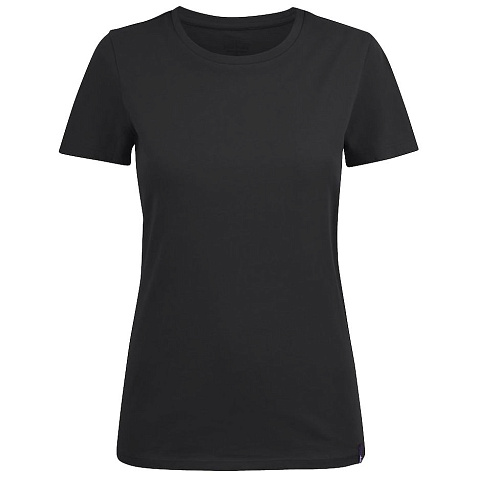 Женская футболка с круглым вырезом. Двухслойная резинка предохраняет воротник от деформации после стирки.