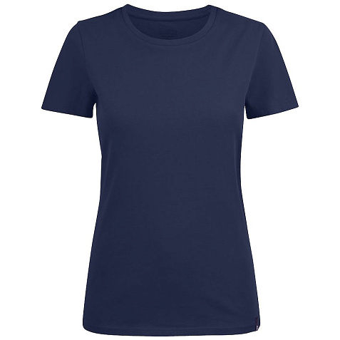 Женская футболка с круглым вырезом. Двухслойная резинка предохраняет воротник от деформации после стирки.