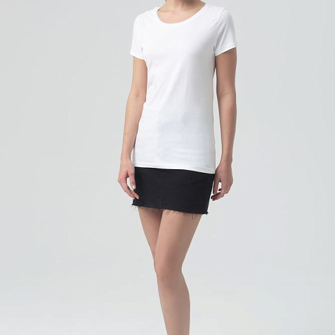 Женская облегающая футболка из джерси c боковыми швами и круглым вырезом.