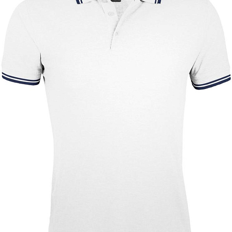 Рубашка поло мужская Pasadena Men 200 с контрастной отделкой, белая с синим