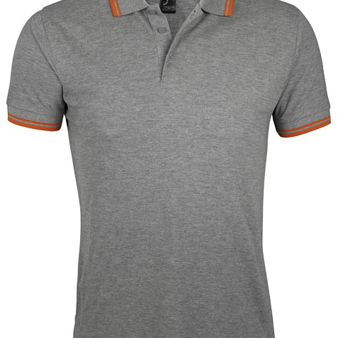Рубашка поло мужская Pasadena Men 200 с контрастной отделкой, серый меланж с оранжевым