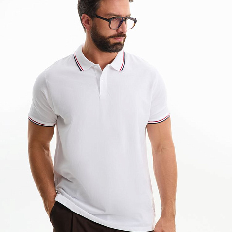 - Контрастные полоски на воротнике, по низу рукавов, внутри бокового разреза и на внутренней стороне ворота