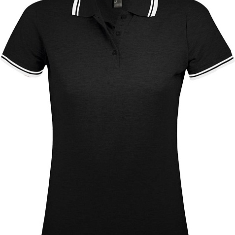 Рубашка поло женская Pasadena Women 200 с контрастной отделкой, черная с белым