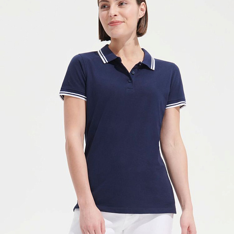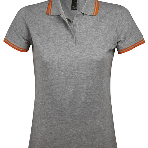 Рубашка поло женская Pasadena Women 200 с контрастной отделкой, серый меланж с оранжевым