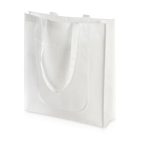 Большая вместительная и невесомая сумка с ламинированной поверхностью - всегда незаменимый помощник под рукой. Спереди расположен большой карман под ваш логотип.